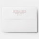 This wedding envelope features a minimalist design with centred text on a clean, white background. The muted rose colour palette adds a soft touch, while the modern serif typography ensures clarity and elegance. Perfect for formal invitations or announcements, this understated style conveys sophistication through simplicity, making it ideal for couples seeking a refined yet inviting look.