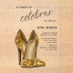 Beautiful classy and elegant Spanish birthday invitation for women. With two/2 shiny glittery gold high heel/stiletto shoes decoration. All text is fully customisable, if you would like help, please contact me through my store and i will be very happy to help you. Modern, trendy sophisticated fashionable design for women's events.