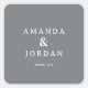 This square sticker features a minimalist design with a solid gray background and clean, modern typography. The layout is simple and balanced, showcasing the names "Amanda & Jordan" in bold, capitalized letters, followed by a smaller "thank you" below. The use of negative space enhances its elegance, creating an understated yet sophisticated look perfect for expressing gratitude at weddings or special events.
