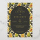 This wedding invitation features a modern and elegant design with a repeating pattern of avocado illustrations in various shades of green, accented by brown pits and leaves. The central oval frame is set against a black background, highlighting the gold serif typography that adds a touch of luxury. Customizable placeholders allow for personalization with names, dates, and locations, while the phrase "Dinner & Dancing to Follow" sets the tone for a festive celebration. The combination of botanical motifs and sophisticated typeface creates a harmonious balance between nature-inspired themes and traditional elegance, perfect for a stylish and memorable event.