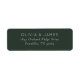 This return address label features a sophisticated, minimalist design with a solid dark green background and crisp white text. The layout is clean and balanced, utilising ample spacing between lines for easy readability. A classic serif font adds elegance, making it perfect for formal occasions or professional use. The customisable nature allows you to personalise the details effortlessly, ensuring it fits any event or announcement seamlessly.