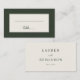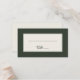 This wedding place card features a minimalist design with a dark green rectangular frame and ample white space, creating an elegant and uncluttered look. The layout includes two horizontal lines for customisation and the word "table" in a stylish cursive script font, adding a touch of sophistication. The modern aesthetic emphasises clean typography and geometric shapes, making it perfect for formal events where organisation and presentation are key. Its simple yet refined style conveys a sense of order and calmness, ideal for weddings or upscale gatherings.