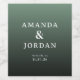 This elegant wedding wine label features a minimalist design with a gradient green background transitioning from light to dark. The layout is clean and modern, showcasing the names in large, uppercase serif letters, complemented by smaller sans-serif text for location details. The typography emphasizes clarity and sophistication, making it perfect for formal celebrations. Its simple yet stylish aesthetic conveys a mood of elegance and refinement, ideal for commemorating special occasions like weddings.