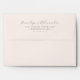 This elegant envelope features a minimalist design with centred text elements on a clean white background. The layout combines an elegant script font for the names and a modern sans-serif typeface for the address, creating a sophisticated and timeless look. The dark grey colour palette adds subtle contrast without overwhelming the simplicity of the design. Perfect for formal invitations or announcements, this envelope exudes refinement and clarity through its balanced composition and ample negative space.