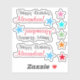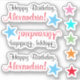 This classy sticker design features the celebratory message "Happy Birthday", and an editable name. It also has a star shape. Customisable stickers like these could be used when wishing a happy birthday to somebody.