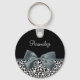 Personalise by adding the name of any girly girl to this sophisticated black and white leopard print keychain with an elegant ribbon tied into a classy feminine bow. This stylish animal print design is a flat printed image, and does not contain actual ribbon.