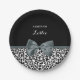 Sophisticated Leopard Print Grey Bow With Name Paper Plate