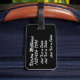 This was purchased as part of a 40th Birthday present for my nephew who is going to Vegas. It is made of high quality, very study and we decided only to put his name on the back of the tag, but you can add a full address if you so wish.