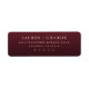 This return address label features a sophisticated, minimalist design with a deep maroon background and soft cream text. The layout is clean and centred, utilising elegant serif typography for a timeless look. Perfect for formal events or invitations, the design emphasises clarity and refinement, making it ideal for those seeking a classic yet modern aesthetic.
