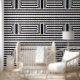 Transform your space and showcase your own unique style with this black and white striped circle monogram wallpaper.