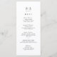 Sophisticated black and white minimalist wedding menu cards with couple's monogram. The back of the design features vintage floral with colour editable background. Simple and elegant. Great for modern classic wedding, and formal wedding.
