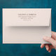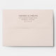 This wedding envelope features a minimalist and elegant design with a muted brown colour palette, creating a warm and sophisticated tone. The layout is simple yet refined, showcasing centred uppercase serif typography for the names and address, which are customisable placeholders. The clean lines and balanced spacing emphasise clarity and formality, making it perfect for weddings or formal invitations. Its understated style conveys timeless elegance, ideal for those who appreciate simplicity and sophistication in their stationery.