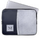Sophisticated Navy and Silver Feather Monogram Laptop Sleeve
