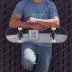 Sophisticated Navy and Silver Feather Monogram Skateboard