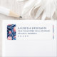 These return address labels feature a sophisticated blend of botanical elegance and modern minimalism. The left side showcases stylised protea flowers in shades of pink and coral with dark blue-green leaves on a deep navy background, while the right side offers a clean white space for text. The classic serif font provides a timeless touch, ensuring readability and visual clarity. Perfect for formal occasions, these labels convey a mood of sophistication and refinement, making them ideal for weddings or elegant events.