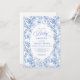 Create a timeless first impression with this baby shower invitation featuring elegant French toile de jouy roses in refined shades of navy blue, royal blue, dusty blue, and deep blue, inspired by classic chinoiserie floral design. This sophisticated style blends heritage elegance with modern charm, making it perfect for a memorable baby shower celebration.