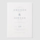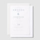 This wedding invitation features a clean, modern design with a vertical layout and ample white space, creating an elegant and sophisticated look. The color palette is minimalistic, using deep navy blue text on a crisp white background, enhancing readability and formality. Typography plays a central role, with bold serif fonts highlighting the couple's names and smaller, lighter serifs providing event details, all arranged in a balanced, symmetrical composition. The overall mood is refined and inviting, perfect for couples seeking a classic yet contemporary aesthetic for their special day.