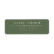 These return address labels feature a clean, minimalistic design with centered text on a muted olive green background. The elegant serif font adds a touch of sophistication, making them perfect for formal occasions or personal correspondence. With customizable fields for names and addresses, these labels offer both functionality and style, ensuring your mail stands out with a refined, professional look.