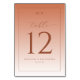 This elegant wedding table card features a warm gradient background transitioning from soft peach to coral, creating a sophisticated and inviting atmosphere. The design showcases a large, bold numeral "12" in a rich brown serif font, complemented by the word "table" in an elegant cursive script above it. Customisable initials at the top and names below add a personal touch, while the minimalist layout ensures clarity and modernity. Perfect for formal occasions, this card combines understated style with a refined mood, making it ideal for weddings or upscale events.