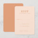 This wedding RSVP card features a minimalist design with a soft peach background and dark brown text, creating an elegant and inviting aesthetic. The layout is clean and organized, with ample spacing between sections for easy readability. Serif fonts add a touch of sophistication, while the customizable fields allow for personalization without cluttering the simple composition. Perfect for conveying gentle urgency and formality, this card is ideal for couples seeking a modern yet understated invitation style.