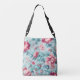 Sophisticated Pink Claret Flowers and Azure Leaves Crossbody Bag