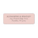 These return address labels feature a simple, elegant design with centered text on a soft pink background. The clean serif typography provides a sophisticated and timeless look, perfect for formal correspondence or special occasions. The minimalist layout focuses entirely on legibility, ensuring your information stands out clearly against the gentle backdrop. Ideal for those who appreciate understated elegance in their stationery.