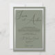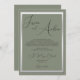 Beautiful sophisticated sage and silver coloured wedding invitation. Trendy sage and silver colours for your special day. Romantic and fashionable colours for weddings. Pretty sage background with a shiny silver border. Unique, chic and classy invitation suitable for any season. All text, font and font colour is fully customizable to meet your requirements. If you would like help to customize, or would like matching products, please contact me through my store and i will be very happy to help you.