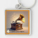A vintage gramophone silhouette, delicately outlined in elegant lines and touched with golden accents, evokes the timeless charm of classic music. Its refined design is set against a soft, textured background, capturing the essence of a golden age in sound. "Original Image was generated by Meta AI. AI generated artwork. Licensed under CC BY-SA 4.0."