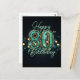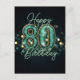 Sophisticated Teal and Gold Metallic 80th Birthday Postcard