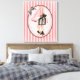 Stylish lady shopping with french bulldog puppy on stripy pink background. Designed by artist Maryline Cazenave.