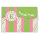 Make writing thank you notes fun with this pretty patterned card personalised with your monogram . Designed in lime and grapefruit pink polka dot and striped patterns and a simple flower accent. Cute for girls and ladies of all ages, Just edit the text letter in the easy Zazzle editor.