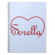 The Italian word for sister is Sorella. Done in red script and tucked inside of the top of a heart.