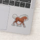 This pretty sorrel pony has a white blaze and white socks. Perfect for equestrians and horse lovers, this small decal is perfect for decorating phones, water bottles, lunch boxes, riding helmets, barn equipment, and any everyday items.