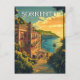 Discover the beauty of Sorrento, Italy with this stunning Art Deco vector postcard. Admire the detailed illustration of the city's picturesque setting and architecture, rendered in bright pastel colours and a colourful style.