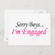 Sorry Boys Im Engaged Announcement Postcard