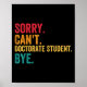 Sorry Cant Doctoral Student Bye Phd Graduation Stu Poster