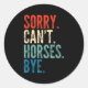 Sorry Can't Horses Bye Funny Riding Equestrian Vin Classic Round Sticker