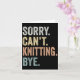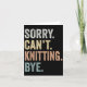 Sorry Can't Knitting Bye Funny Knitting Lovers Card