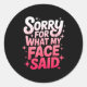 Sorry For What My Face Said Funny Sarcastic Minima Classic Round Sticker