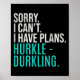 Sorry I Can't Have Plans Hurkle Durkling Funny Hur Poster