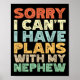 Sorry I Can't I Have Plans With My Nephew Poster