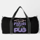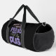 This humourous black duffle bag features the playful phrase "Sorry I Can't I HAVE PLANS With My PUG." The vibrant pink and purple distressed text adds a fun and lively touch. Perfect for pug lovers, this bag is a wonderful way to express your devotion to your furry best friend and your preference for their companionship. Edit colour of the bag caps and body in the Design tool to your favored colours.