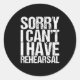 Sorry I Can't I Have Rehearsal Actor Gift Classic Round Sticker
