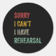 Sorry I Can't I Have Rehearsal Classic Round Sticker