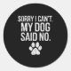Sorry I Can't My Dog Said No Dog Footprint Classic Round Sticker