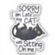 Celebrate the hilarious reality of cat ownership with this adorable sticker featuring a playful black cat lounging on its back. The phrase 'Sorry I Am Late, My Cat Was Sitting On Me' adds a humourous twist that every cat lover can relate to. Perfect for gifting or treating yourself, this design captures the charm and quirks of feline companionship.