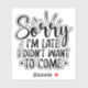 Sorry I'm late, I didn't want to come