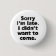 Sorry I'm Late. I Didn't Want To Come. 3 Cm Round Badge