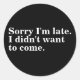 Sorry I'm late. I didn't want to come. introverts Classic Round Sticker