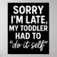 Sorry I'm Late, My Toddler Had To Do It Self Funny Poster